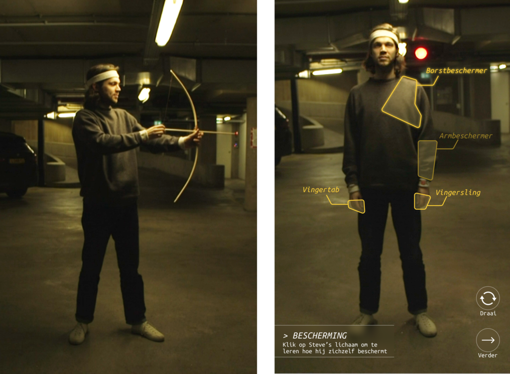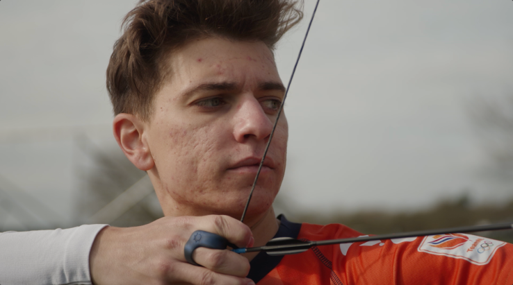 Once the main elements of the design were finalised, it was time to film on location. I was responsible for directing the shots and ensuring we captured all the necessary footage. We scheduled two separate filming days: the first with archer Senna Roos, which served as a test run to try out the planned shots and identify any potential issues. The second day was the actual shoot with Steve Wijler. Thanks to the thorough preparation during the test shoot, the final filming went smoothly, with all challenges already addressed.