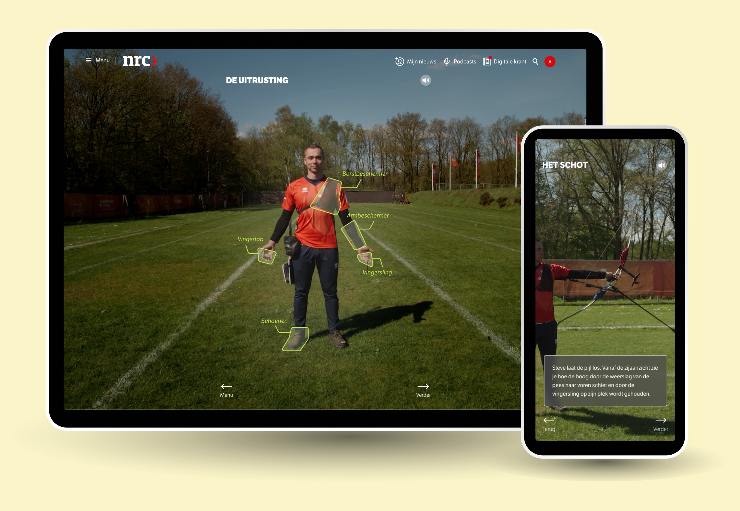 Before I could explain the sport to the user, I decided I had to fully immerse myself in the world of archery. I conducted thorough research to understand every aspect of the sport, from the rules and specialised equipment to the techniques required for execution. We collaborated with Dutch archer Steve Wijler, who was participating in the Olympic Games, and conducted an interview with him. Finally, I tried the sport myself to get a firsthand feel for it, ensuring that I could incorporate an authentic experience into the design.